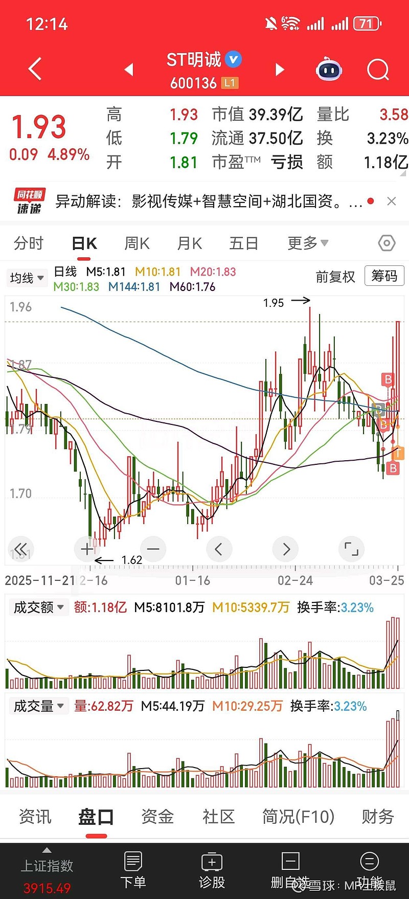 $ST明诚(SH600136)$ 喜欢玩左侧潜伏的,明城是个不错标的。