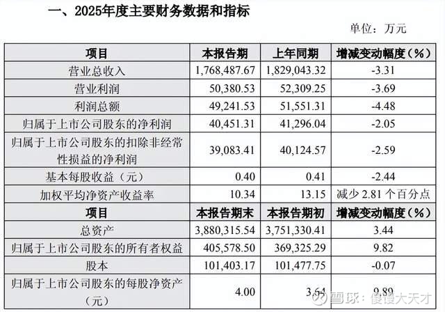 2025年度公司营业收入同比减少3.31%,归属上市公司股东的净利润同比减少2.05%。