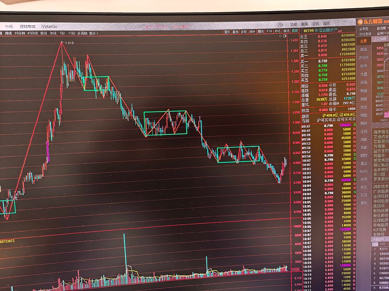 周线下跌的这一笔,在日线上看走了三个下跌中枢,从0.70开始的上升这一笔已经进入了最后一个中枢内部,三卖已经破掉了。