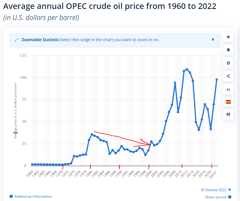 1,先看一下下图,1970-1980年原油价格: