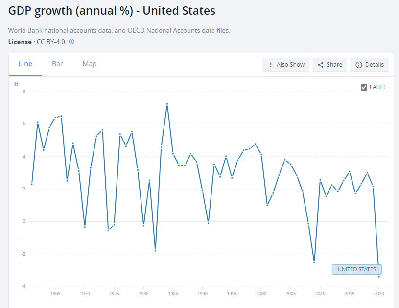 看下图的1974、1980年GDP增速,直接变负。