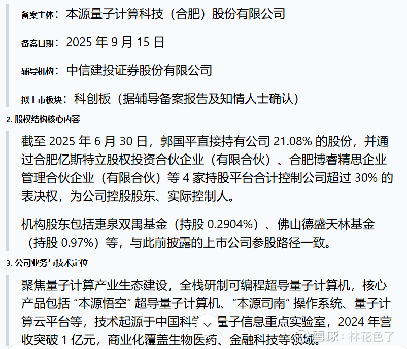 参股路径:通过佛山德盛天林股权投资合伙企业(有限合伙) 间接持股,是当前 A 股参股本源量子比例最高的上市公司。