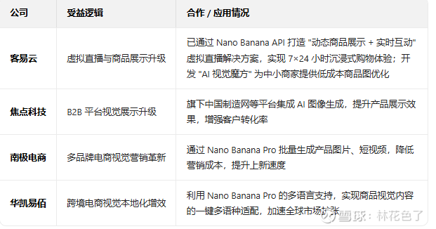 客易云:虽未上市,但其与 Nano Banana Pro 的深度应用案例 (虚拟直播、智能零售) 为相关上市公司 (如焦点科技、南极电商) 提供了可复制的商业模式