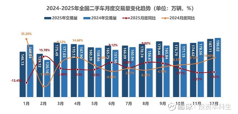 根据中国汽车流通协会最新发的2025年12月二手车数据,2025年全国二手车累计交易量2010.80万辆,首次站上2000万台门槛,同比增长2.52%;交易金额12897.90亿元。12月单月187.11万辆,环比+7.15%,年终翘尾明显。