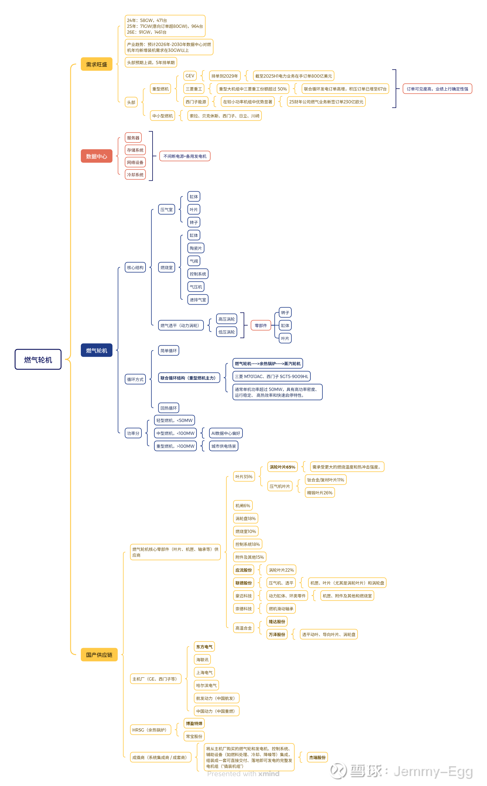 中游:主机厂(GE、西门子等),负责燃机核心机头的研发与制造;