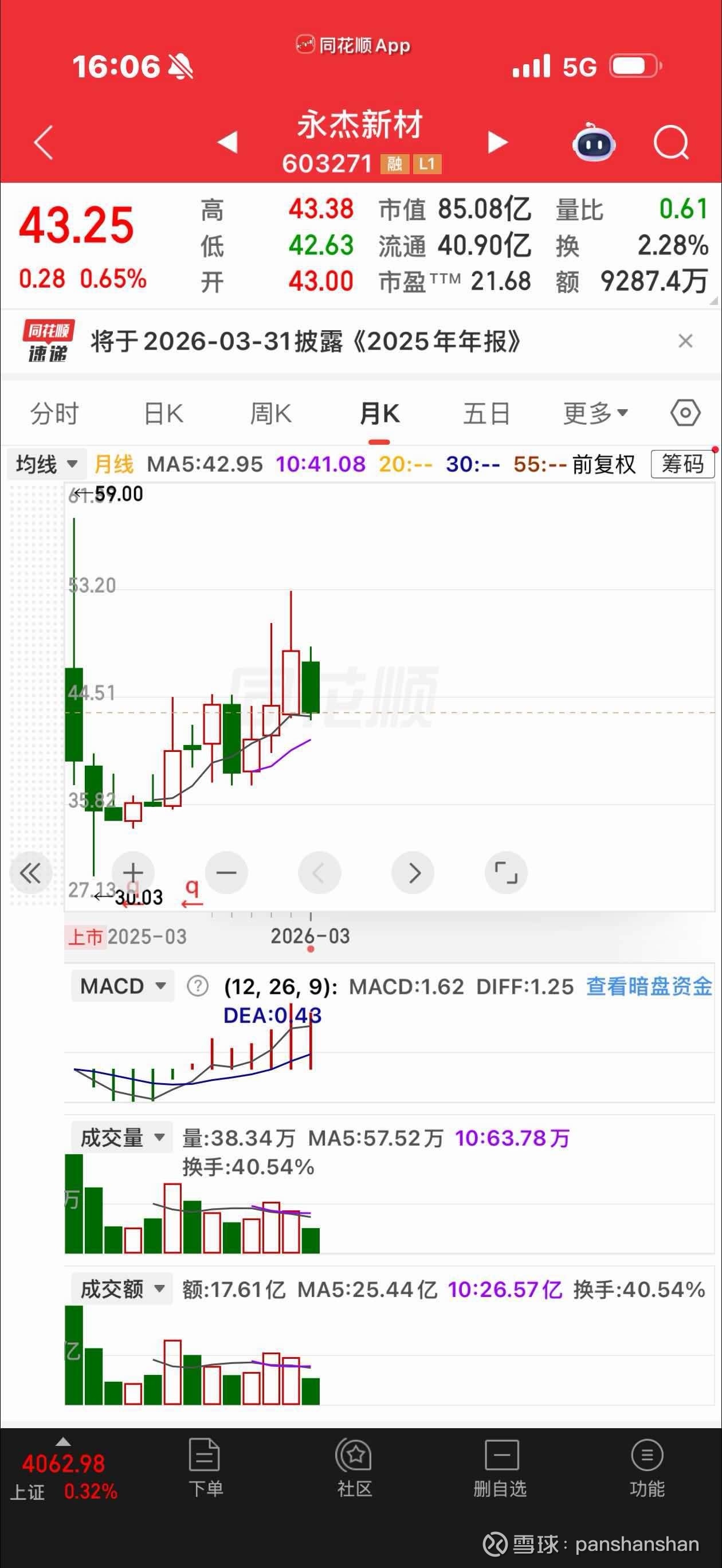 月线横盘七个月,要不是我进进出出,死守这个票,我也拿不住。牛市中横盘七个月,现在又“全流通”了,哪怕对标鼎盛新材的弟弟,翻个倍,也就是鼎盛打八折左右。业绩方面完全不落,企业下游也都是景气行业。要啥题材都有:液冷、锂电池、固态电池、消费电子、PCB…我卖出永杰新材唯一的理由,市值追到鼎胜新材的70-80%,否则,进进出出会一直玩下去。查看图片