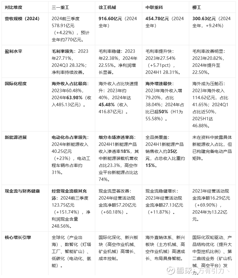 以徐工机械、中联重科、柳工为代表的国内头部企业,同样在周期中调整结构,并呈现出不同的发展路径。下表综合了各公司关键数据,勾勒出当前的竞争态势。
