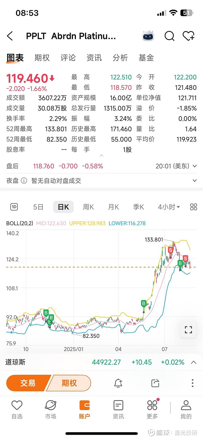 看到有人说我P图,分享一下我自己的操作模式。今年五月操作了铂金,见下图。在去年12月买入了观察仓位,明显是在震荡寻底,但还没有启动。所以在今年五月启动的时候,大力加仓,只做这一波主升浪。其实和东方甄选的操作逻辑是一样的。$东方甄选(01797)$ $铂金ETF-ETFS(PPLT)$