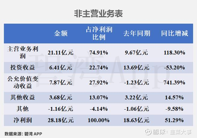 虽然投资收益本期为6.41亿元,去年同期为13.69亿元,同比大幅下降;