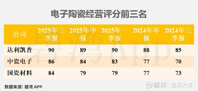 国瓷材料在2025年三季报经营评分排名为第824名,在电子陶瓷行业中排名为3名。