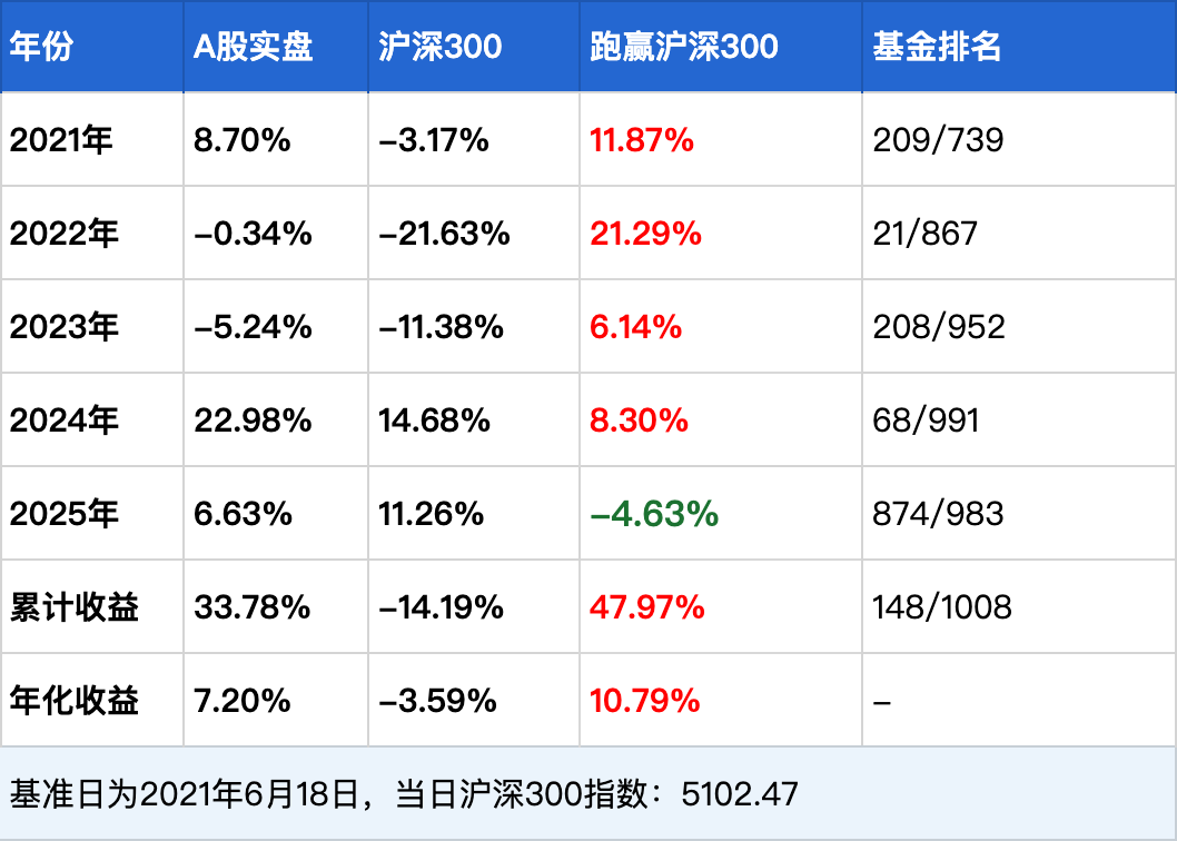自2021年6月18日开始投资,历年实盘收益率,见下表: