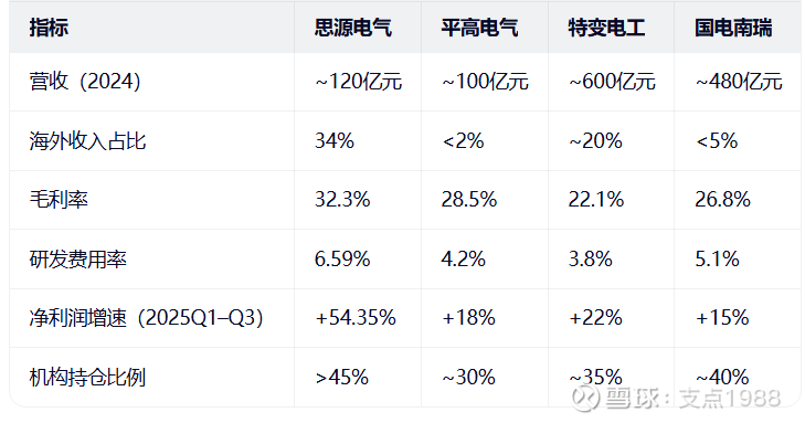 优势: 全产业链覆盖(变压器+GIS+电缆),2024年输配电营收192亿元(思源66亿元); 海外布局早,在印度、中亚设厂,2024年海外输配电收入48亿元(思源30亿元)。