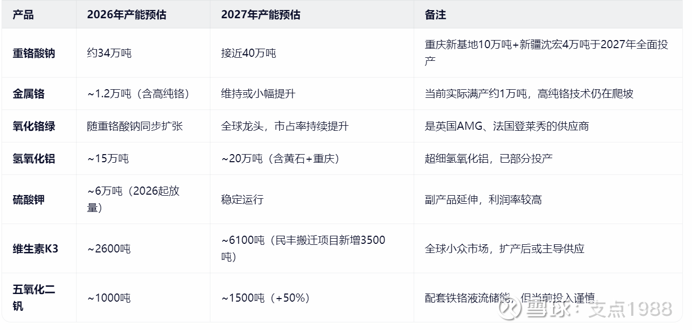 注:民丰化工搬迁项目(2025年6月开工,2027年10月投产)将新增20万吨铬盐产能,显著提升2028年及以后的供给能力,但对2027年全年贡献有限。