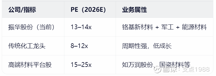 ✅ 振华股份兼具 周期底部反转 + 成长赛道切入(军工、SOFC、液流电池),13–14倍2026E PE具备吸引力。