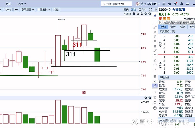 今日开盘爆跌至311底线支撑位,盘中无力反弹。