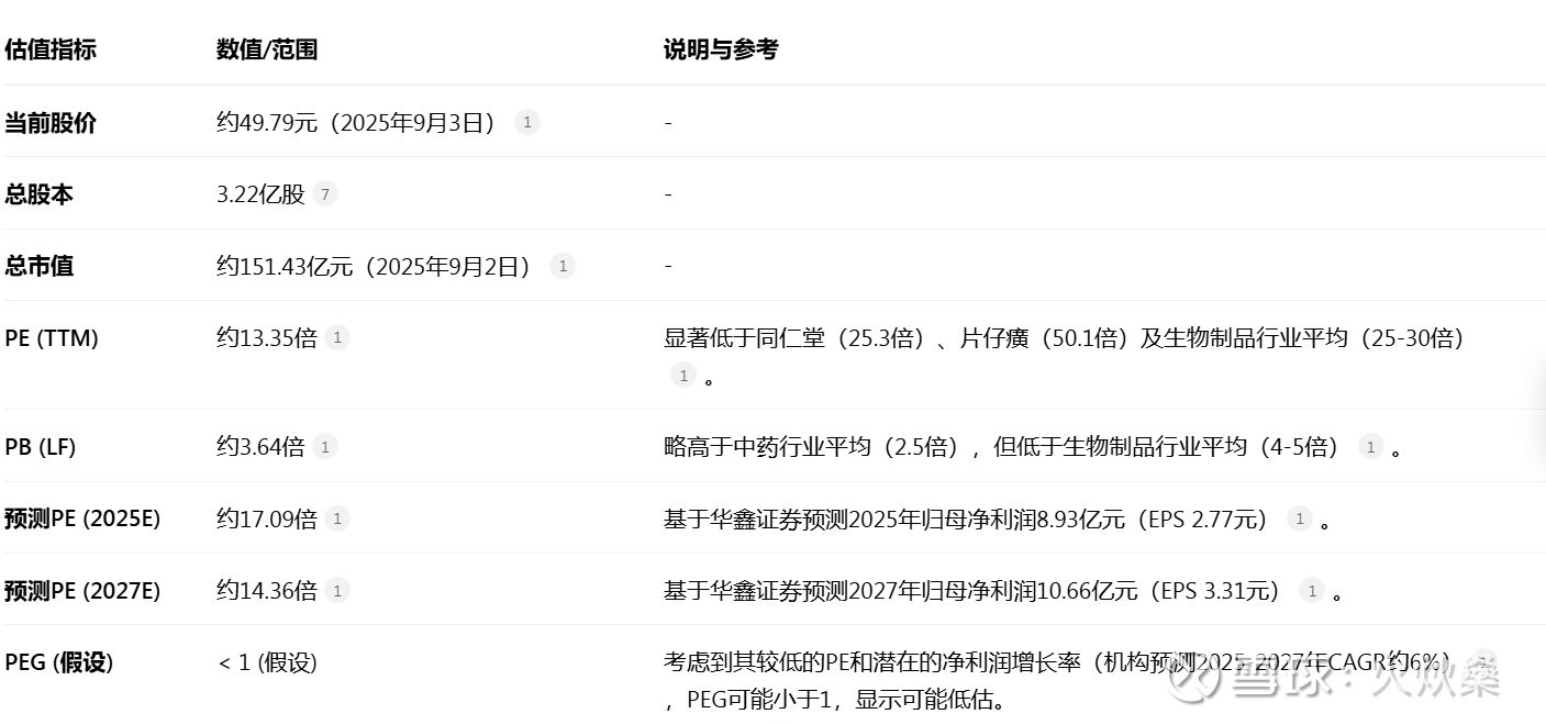 估值区间:综合相对估值和绝对估值,考虑到其高盈利质量和成长潜力,认为其合理目标市值区间大致在148-180亿元,对应股价约46-56元。若创新药布局取得重大突破,估值空间有望进一步打开。