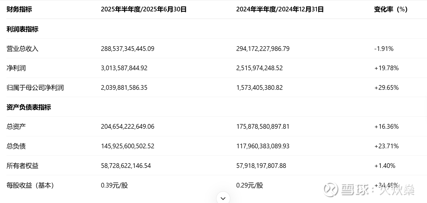 1.净利润增长:2025年半年度净利润同比增长19.78%,归属于母公司净利润增长29.65%,显示盈利能力增强。