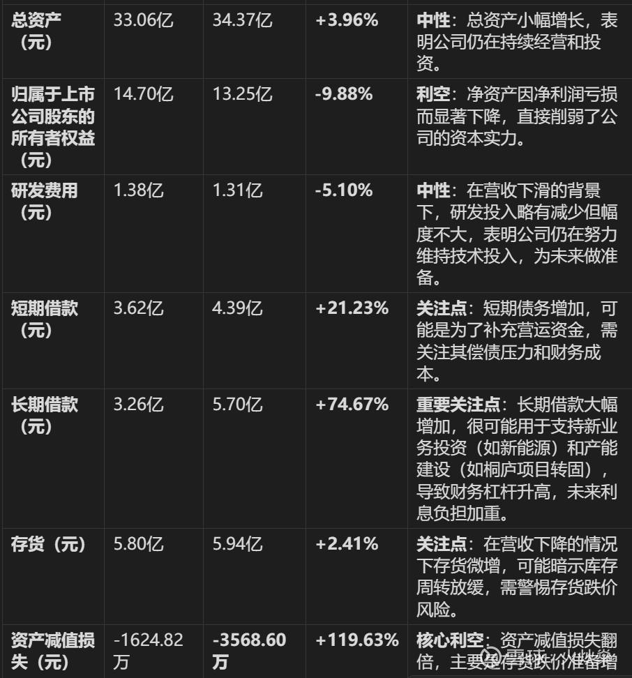 内部计提(次因):基于谨慎性原则,公司对可能无法收回的资产(主要是存货和应收账款)大幅计提了减值准备(资产减值损失大增),这虽然加剧了当期亏损,但也为未来业绩“洗了个澡”,减轻了包袱。
