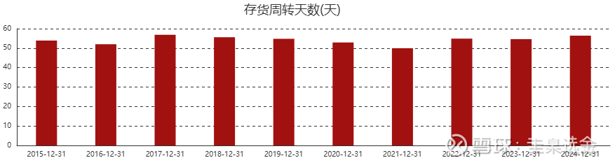 公牛集团的产品主要是toC的,这种经营模式下,主要看它的存货周转天数,从上面的图表可以看出,它的存货周转天数一直稳定在50天左右,说明它经营非常稳定。