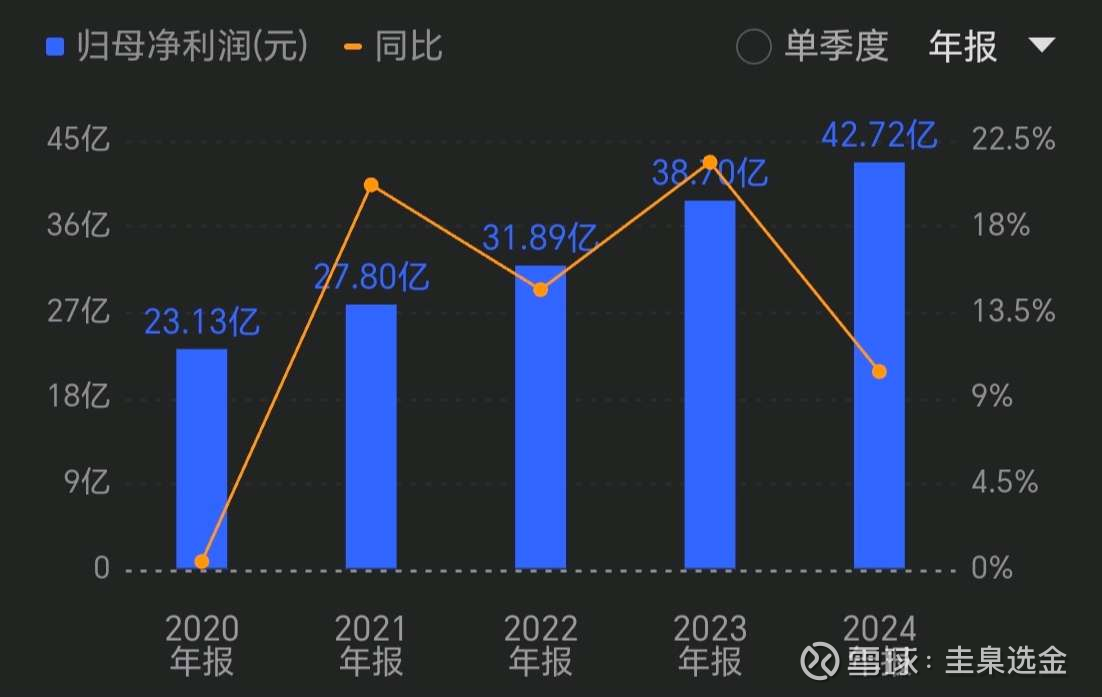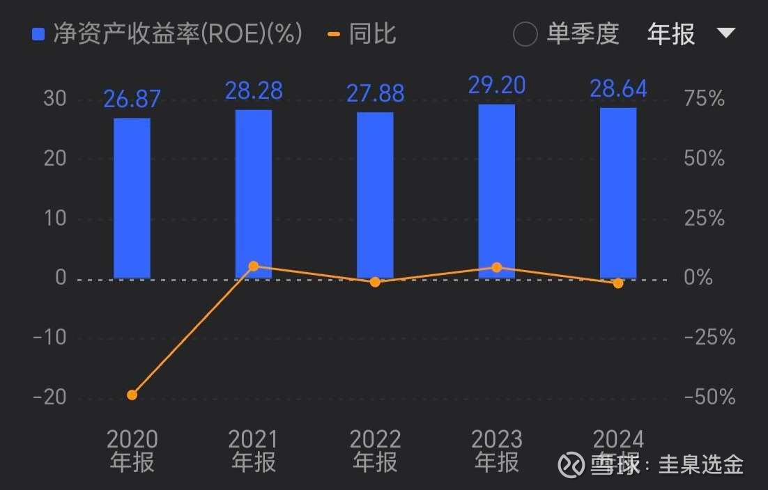 ROE是巴菲特最亲睐的指标之一,ROE越高,表示该公司赚钱的能力越强。公牛集团净资产收益率(ROE)长期稳定在25%以上,说明该企业已经有很坚固的护城河了。