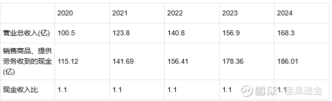 上面的表格为它过去五年营业收入的现金收入比率,都是大于1。这就表示它的营业收入都是真金白银的现金,而不是赊账。说明公牛集团在行业的地位是龙头地位,溢价能力很强。