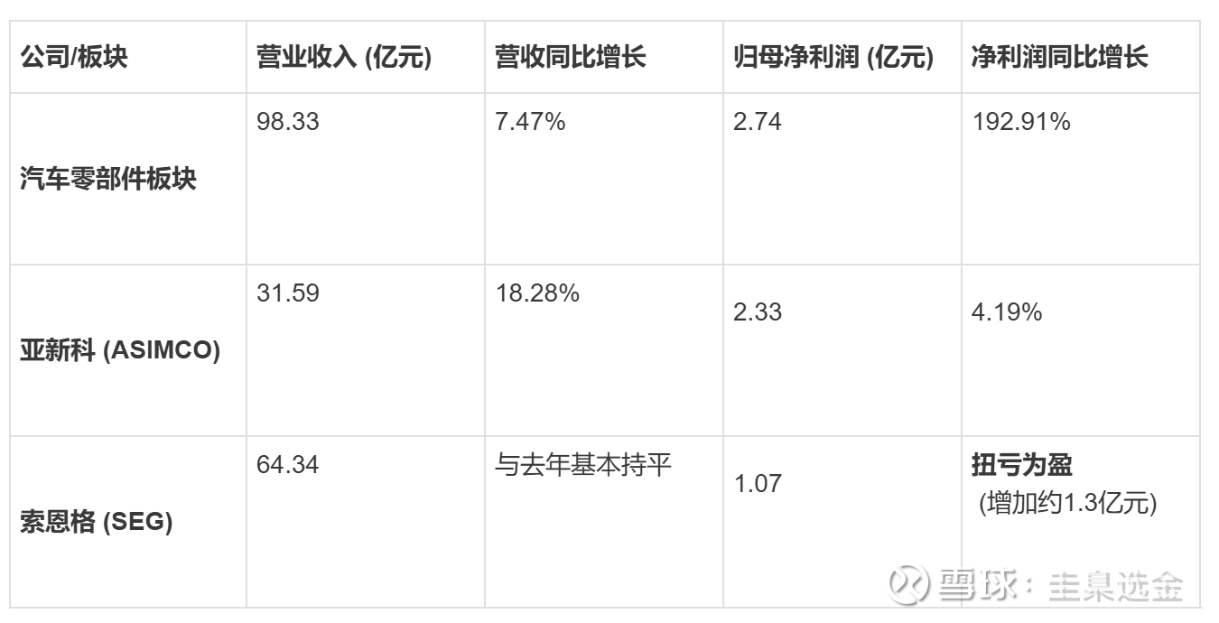 汽车零部件板块净利润之所以能实现近两倍的惊人增长,主要驱动力来自于SEG的成功扭亏。报告指出,这得益于SEG实施的各项降本增效措施,整体降低了生产运营成本。