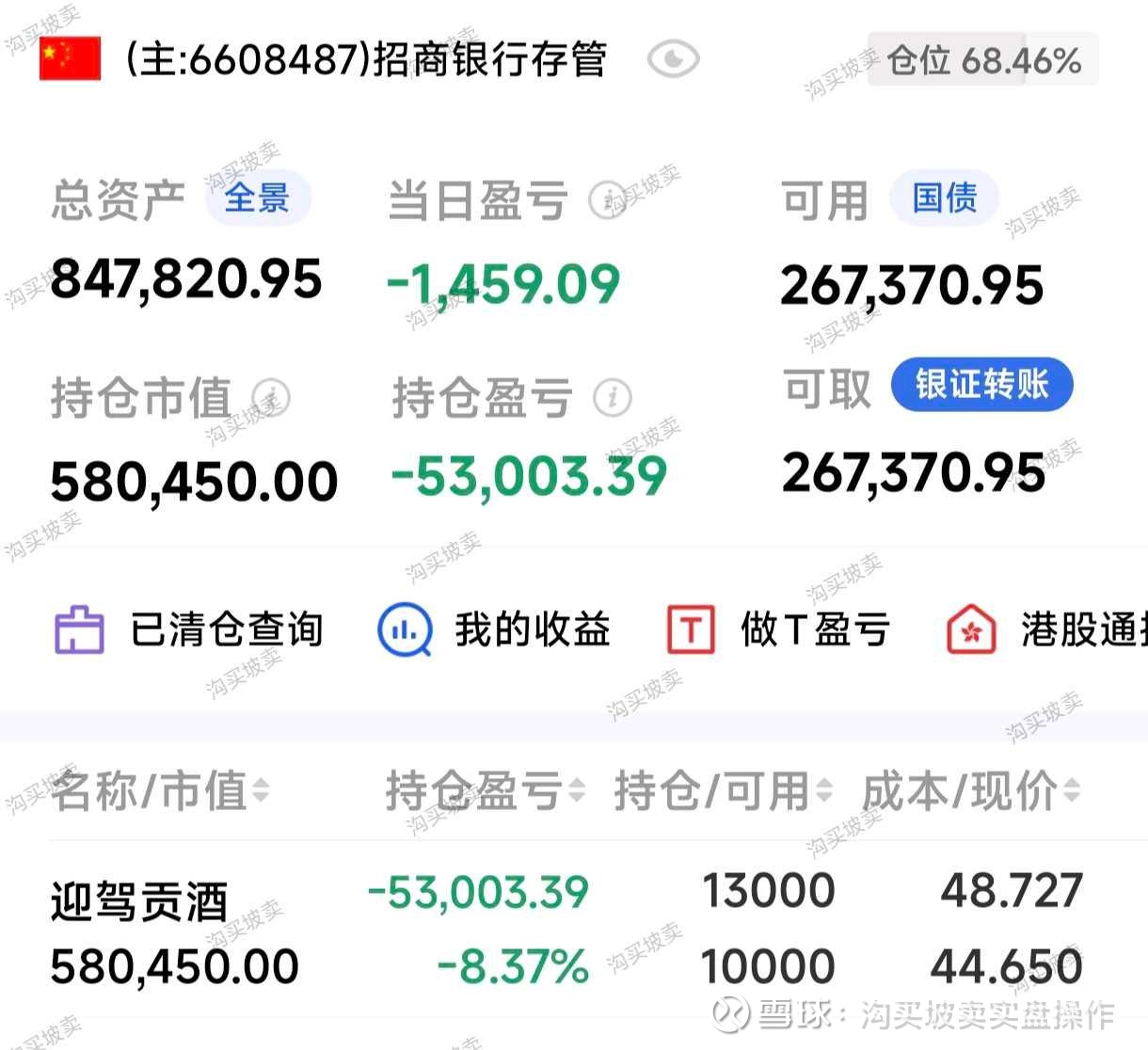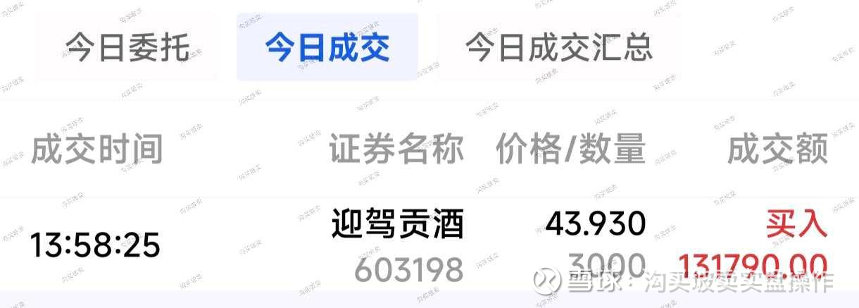 今日操作:今天在43.93元买入3000股迎驾贡酒。收盘账户情况,持有迎驾贡酒1.3万股,成本价:48.72元。持仓市值:58.04万元。可用资金:26.7万元。资产总值:84.78万元。目前股票仓位:68%。