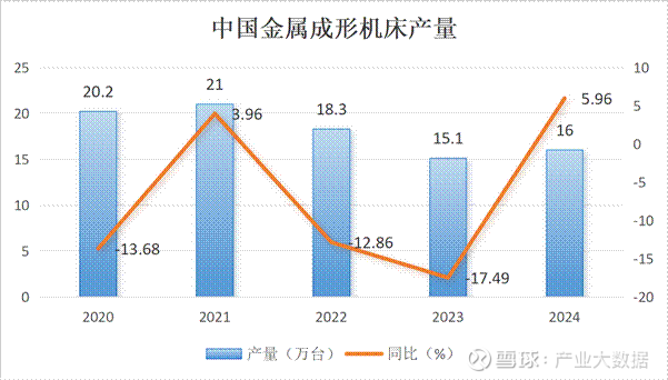 2024年金属成形机床产量16.0万台,同比增长5.96%,结束连续两年下滑态势,行业筑底复苏。