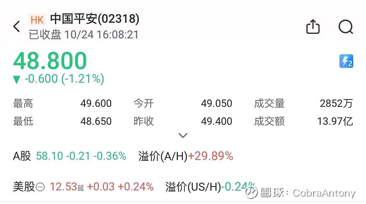 那时的平安A股是58.1,对应48.8的港股折价29%