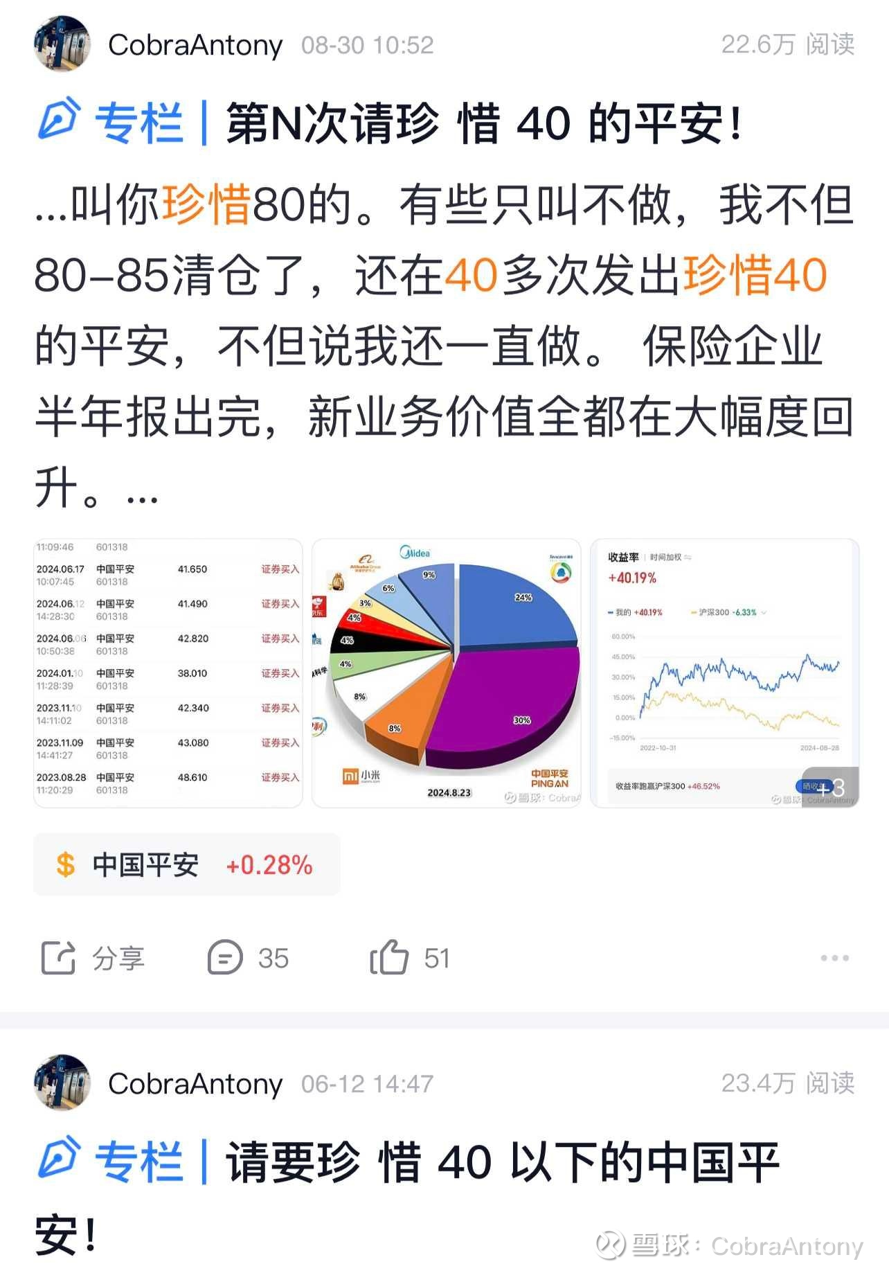 我最高峰持有中国平安是41%仓位,下跌是给我返场的机会。