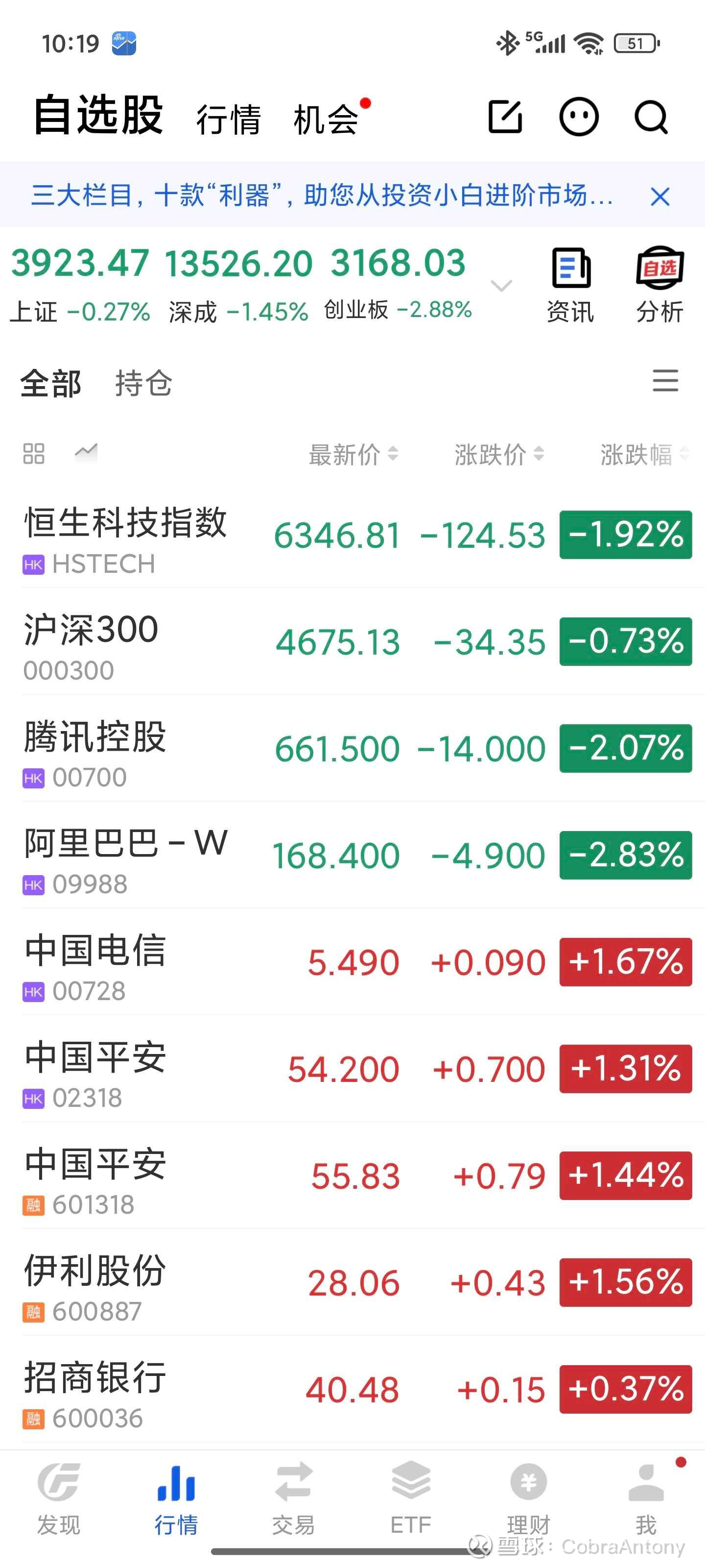 近一个月不断的加仓中国平安,中国电信港股,招商银行,同时减持大量的科技股仓位,现在又上去了。消费伊利今天也有动起来的迹象。