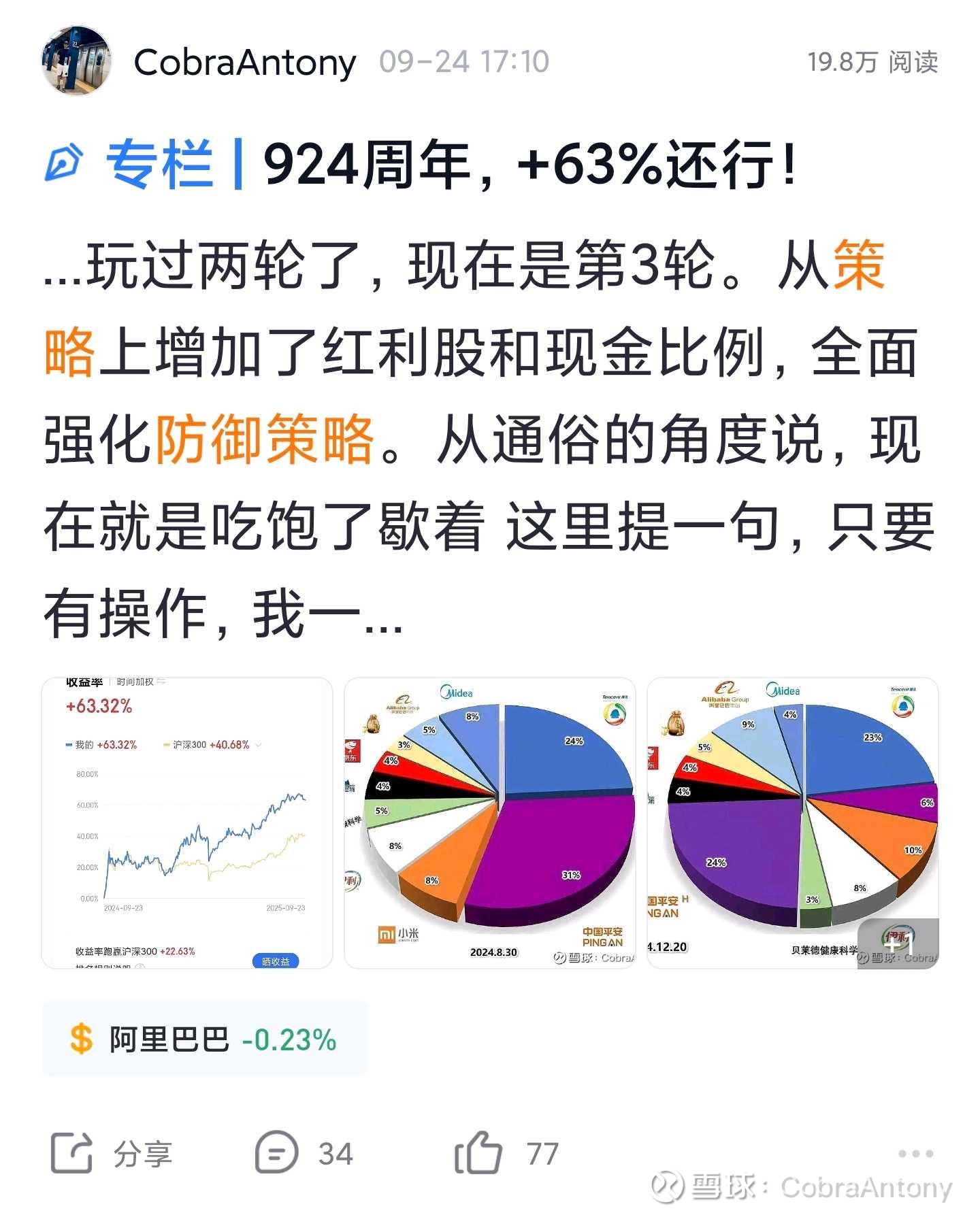 早在9月初我就开始调仓换股,把大部分的科技股减仓清仓、医药股出掉,全面转向防御策略。