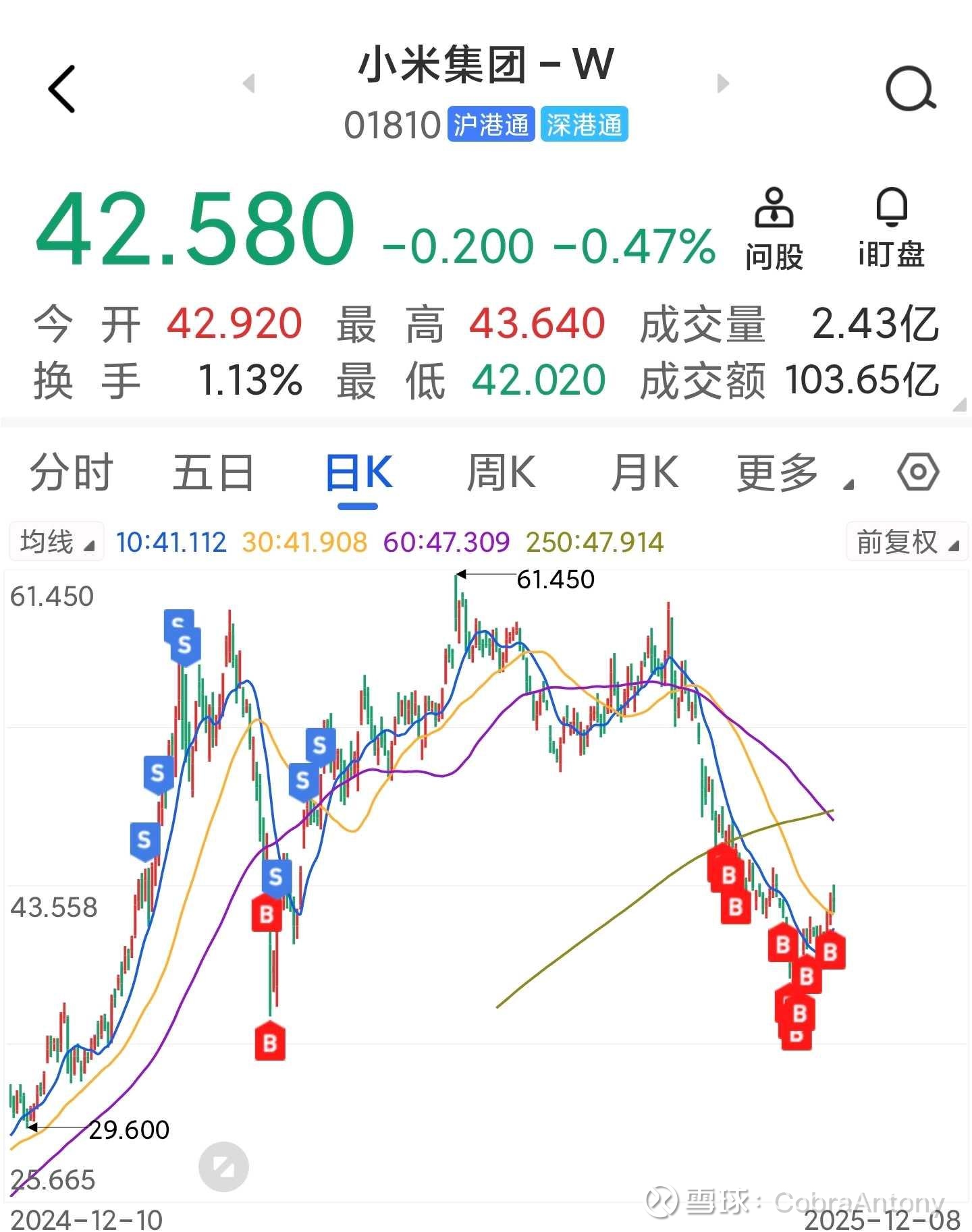 关键的关键,小米在跌了近40%,我才开始大力建仓,第三次建仓。