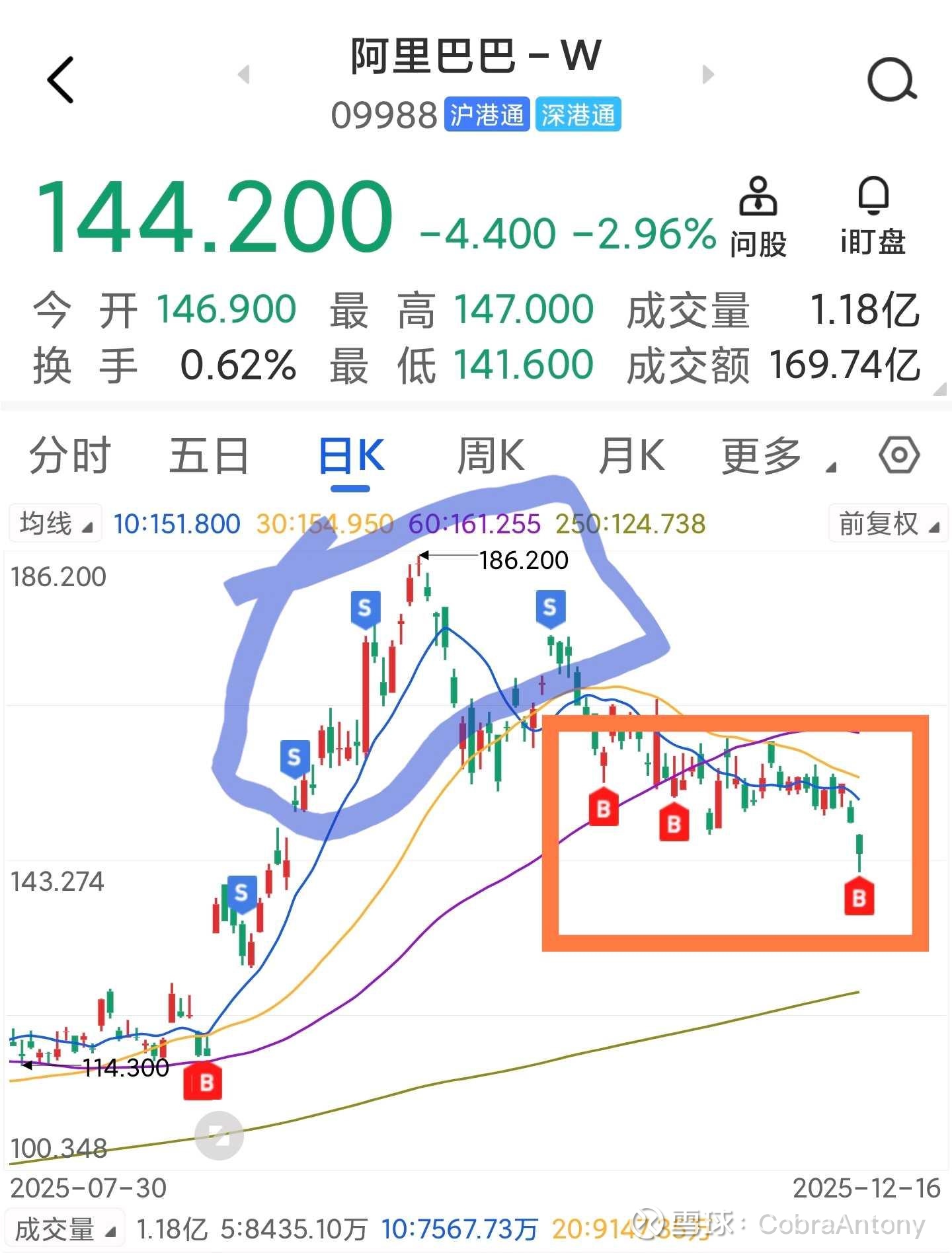 目前阿里巴巴的仓位是我持有阿里巴巴最高仓位的70%![]()