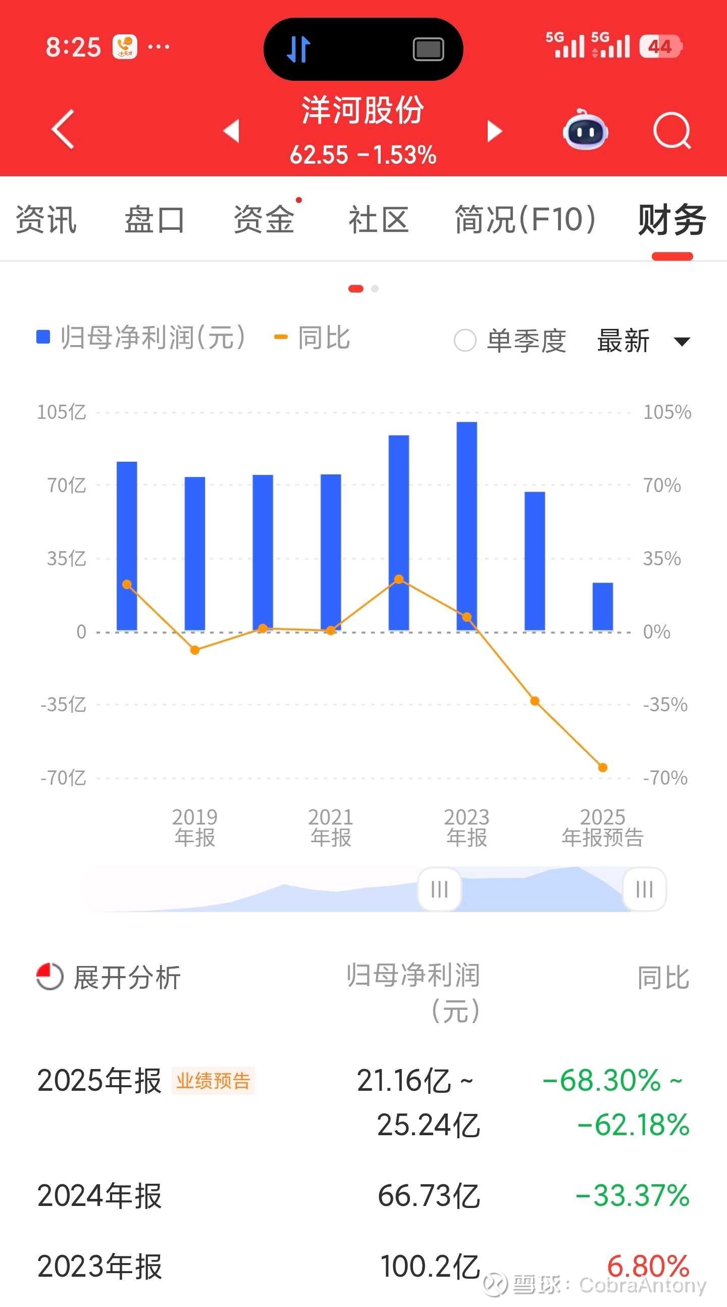 洋河股份昨晚预公告2025年业绩,大幅下滑62%-68%。