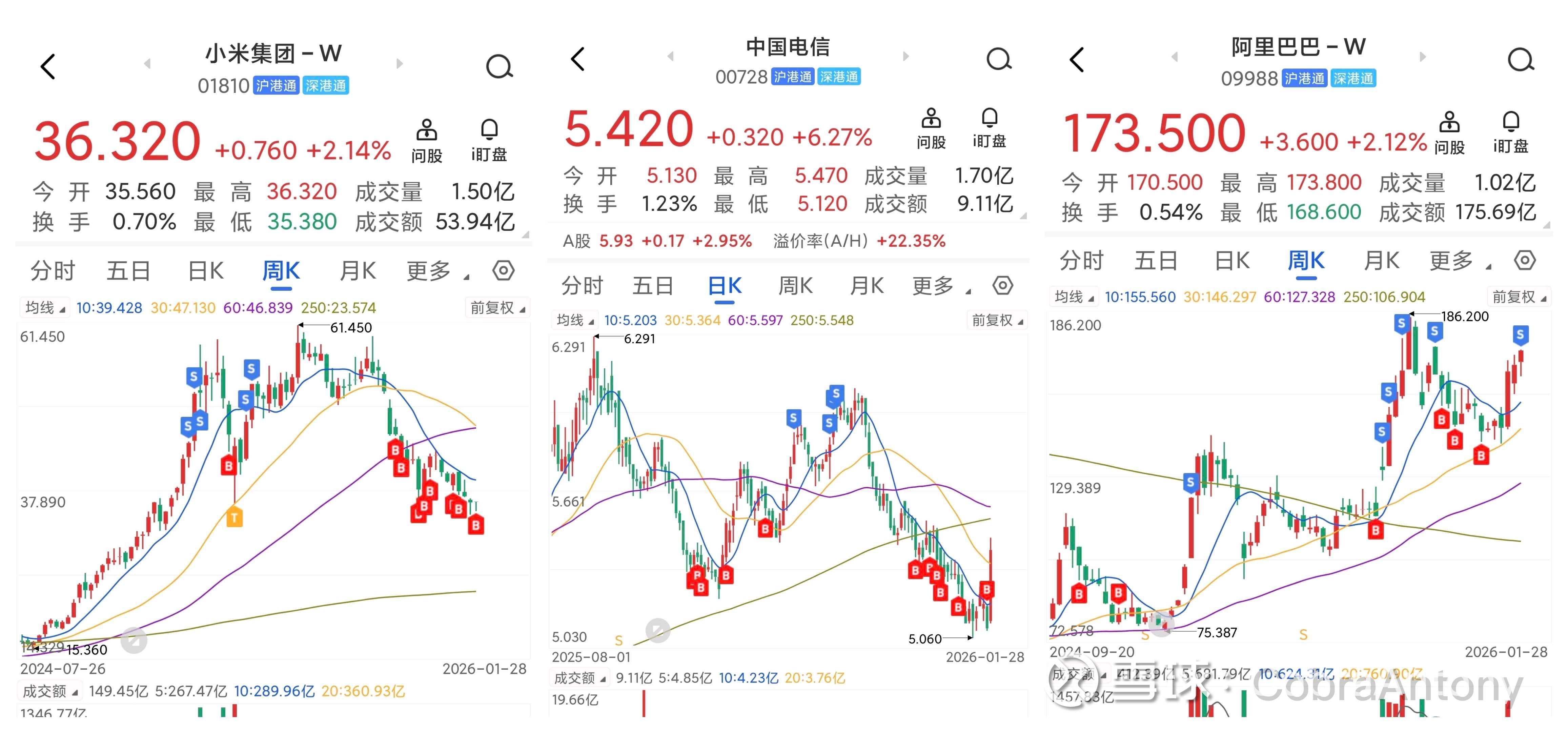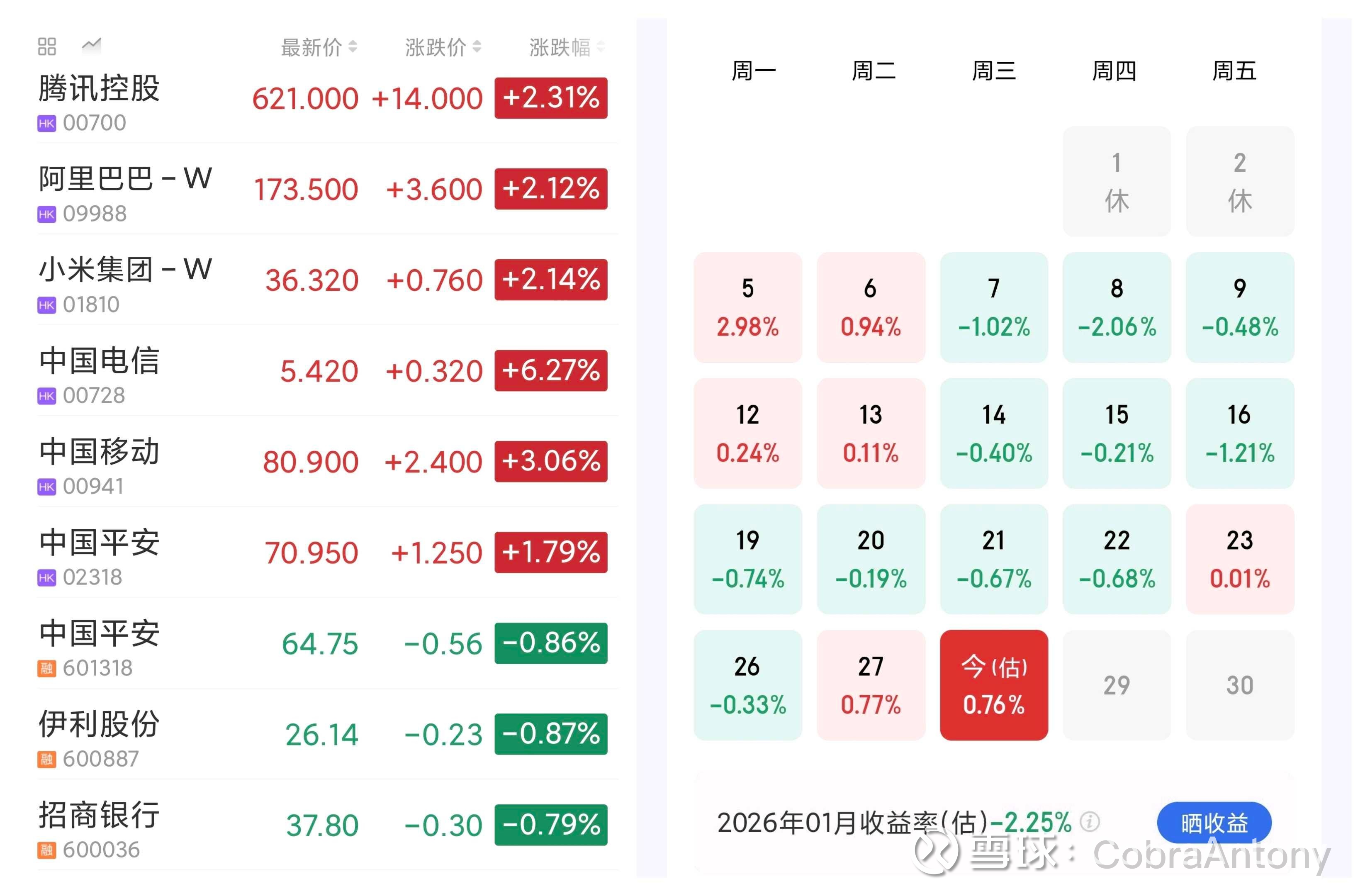 港股的爆发,中国电信港股一马当先,小米,阿里,腾讯,移动紧随其后,港股持仓大涨![]()