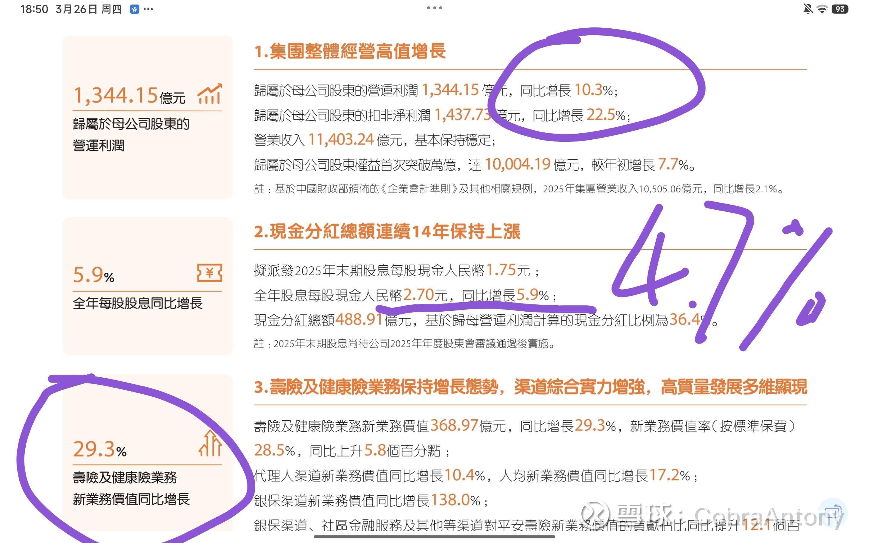 最后总结4点:1.长线发展,看营运利润和新业务价值。2.短线看净利润。3.保底看股息率。4.慢成长看医疗养老业务成长。这样看是不是简单很多?