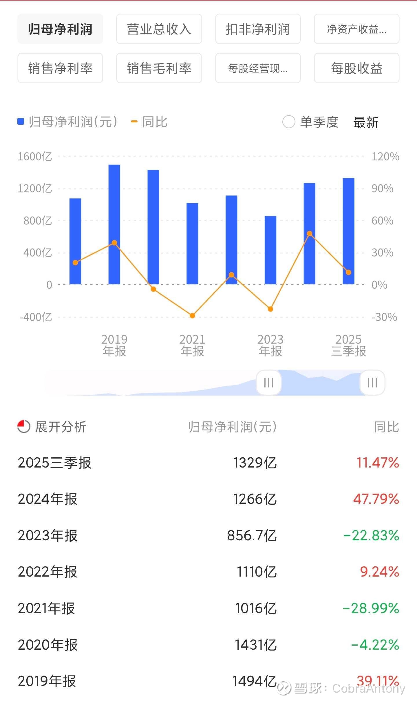历史高点利润是1,494亿在2019年,差了10%。那个时候股价最高90多![]()