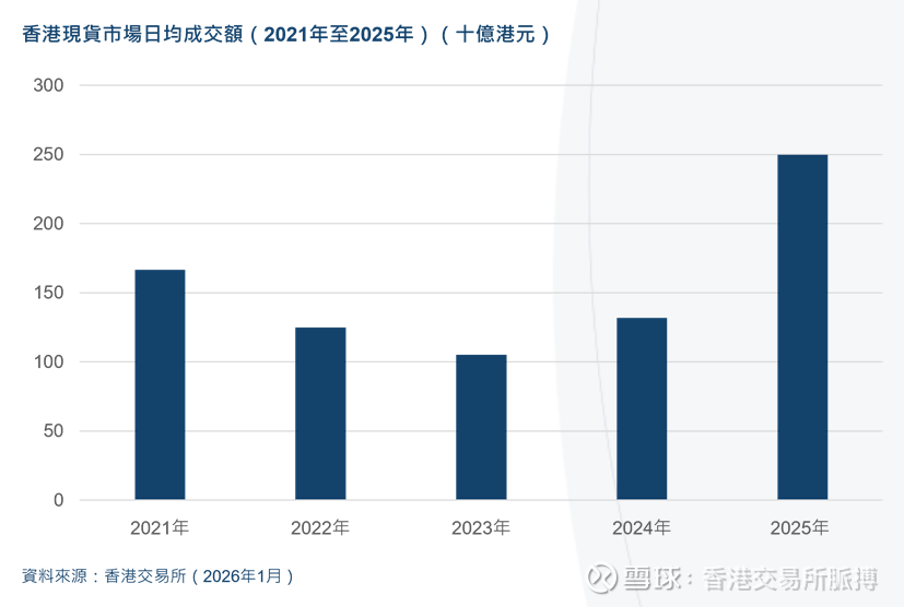 2025 年香港现货市场日均成交额按年增长 89.5%,达到 2,498 亿港元。全球投资者重返香港市场寻求多元化投资主题及具增长潜力的企业,以便捕捉中国创新转型所带来的机遇。
