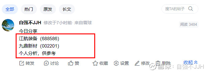 我今天分享的江航装备(688586),不负众望涨了17个点,九鼎新材(0022011),也是涨啦4个点。恭喜跟着我节奏上车的朋友一起吃肉!亲们,炒股不是一朝一夕! 你关注我也不会是一个月两月这么短 所以你想要能和我一样在股市有一番成就,你不妨心不燥气不急细心关注我。 别说关注我只是为了赚钱,赚钱机会随时都有! 但你从始至终不了解我,这便成了你跟我交易之间的隔阂。 亲们!看事做人,看人做事!希望都能够将心比心!一定记得点关注哦。 祝各位持仓飘红,杠上开花 共勉……$汉威科技(SZ300007)$ #$易点天下(SZ301171)$
