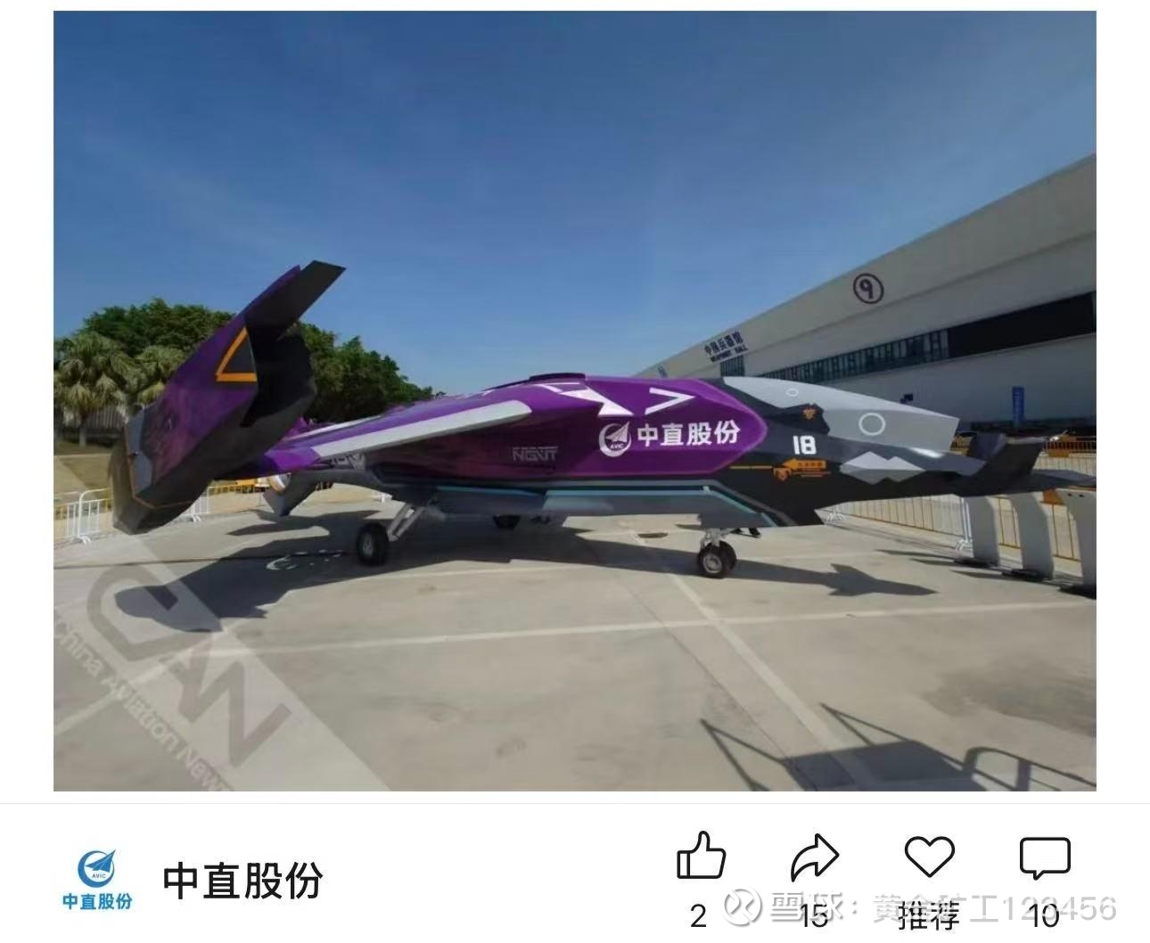 棱角分明的炫酷机身,充满科幻色彩的外观设计,力场涵道,可倾转的动力舱,中直股份的“紫火”通用垂直起降平台预定时速为700千米至800千米,适应低重力、稀薄大气等多种环境。