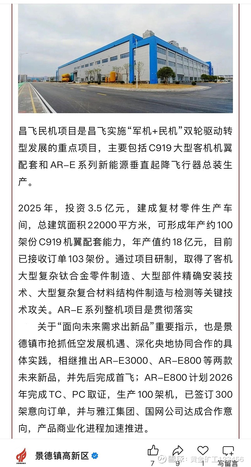 目前,中直股份为C919配套的有垂尾、翼身整流罩、前起舱门、主起舱门以及机翼配套业务,年产能达100架左右。据估算,中直股份为C919配套的产品的单机价值量在3500万-4500万之间。按年产100架C919,净利润率10%来测算,仅C919相关配套业务就将为中直股份未来带来35-45亿的营收增量,以及3.5-4.5亿的净利润增量。$中直股份(SH600038)$ $中航机载(SH600372)$ $中航西飞(SZ000768)$
