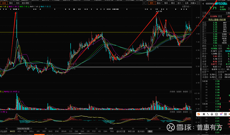 3、交易计划:易止损,知道跌破7.67 ,就止损 ,不会亏钱,但上涨的收益计较大,可以搏一下。