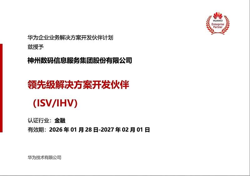 近日,神州信息与华为在金融科技领域的深度合作再获新进展,凭借双方在银行核心系统领域的突破性成果,神州信息成为华为在金融领域“领先级解决方案开发伙伴”的最高级别认证。这不仅是对双方技术实力的认可,更是对在银行核心领域,“从IT价值到业务价值”转型路径的成功验证。