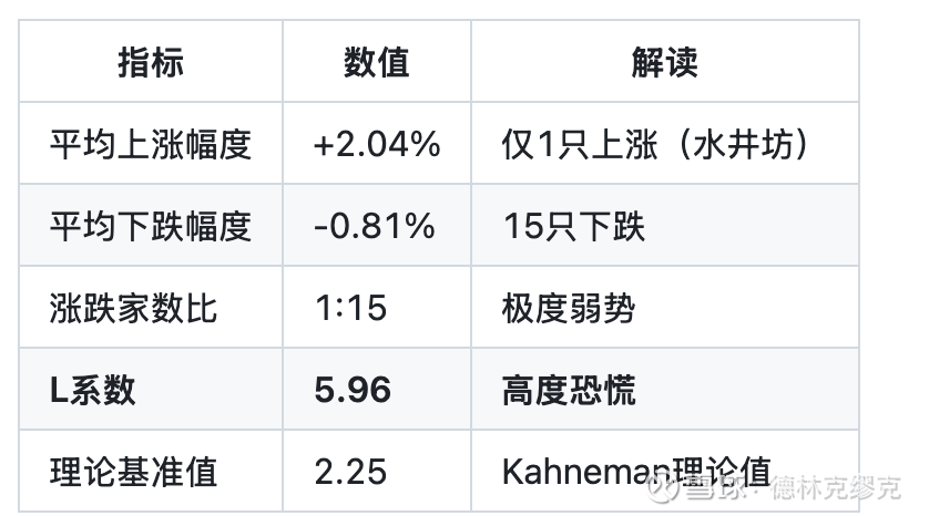 解读:L系数5.96远超理论值2.25,显示投资者处于高度恐慌状态,恐慌情绪蔓延。