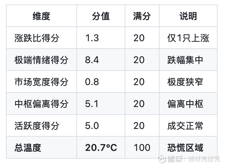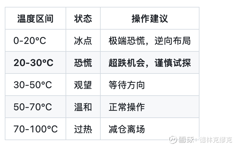 温度模型:0-100°C量表,综合5个维度计算。