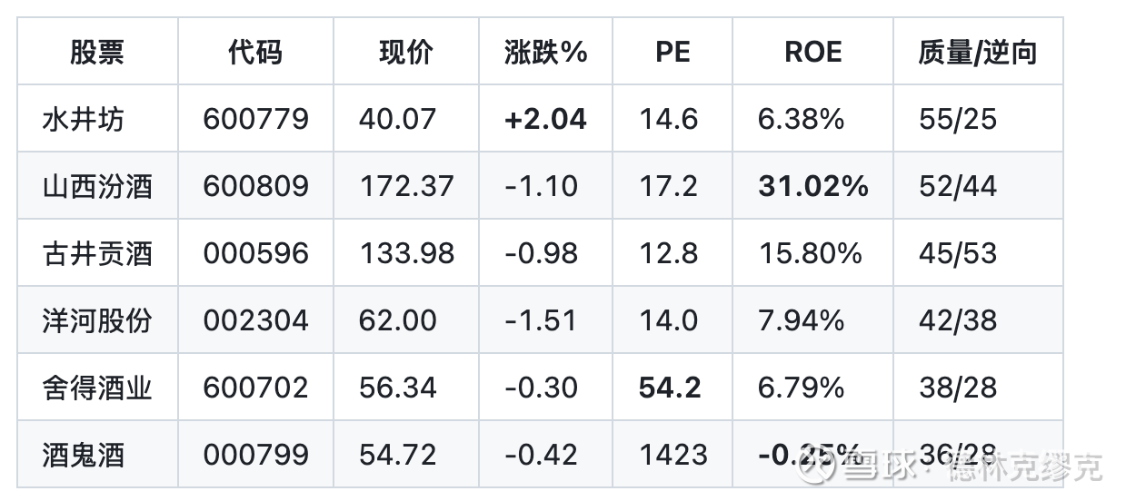 水井坊唯一上涨,但质量分55不达标