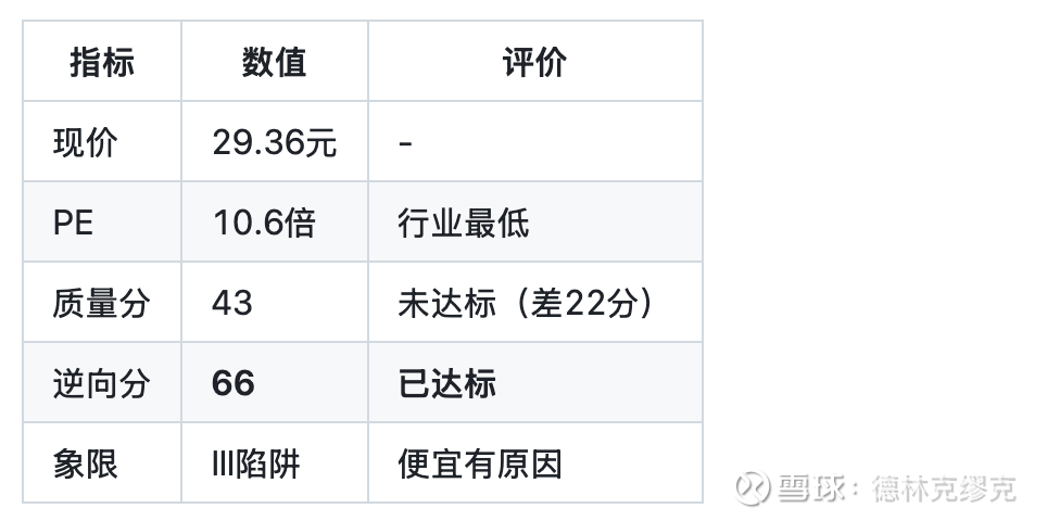 唯一陷阱象限标的:逆向分66达标,但质量分43未达标。