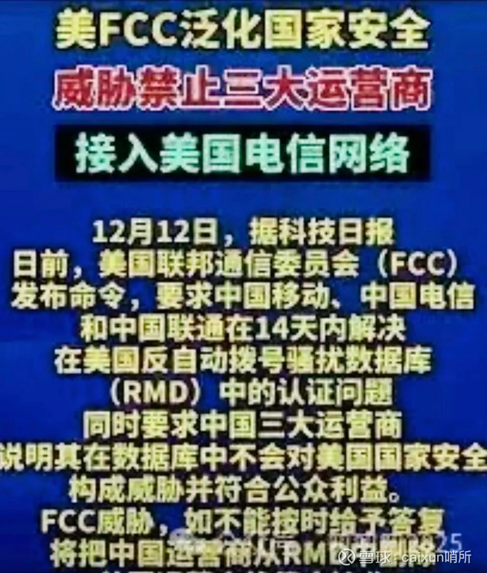 2025年12月,美国联邦通信委员会(FCC)发布重磅命令,将矛头直指中国移动、中国电信、中国联通三大中国电信运营商,引发行业广泛关注。