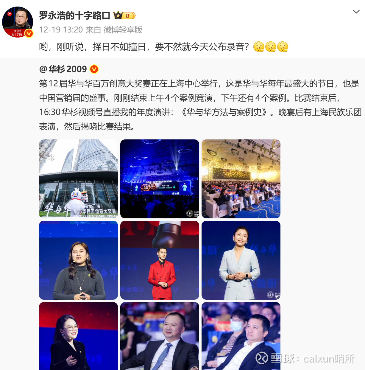 而华与华与罗永浩的争端已持续数月未平息。今年9月,罗永浩吐槽西贝预制菜价高未明示引发舆论风波,华与华作为西贝长期品牌顾问,创始人华杉公开力挺西贝,指责罗永浩为“网络黑嘴”,双方首次爆发交锋,后以华杉私下道歉暂告一段落。